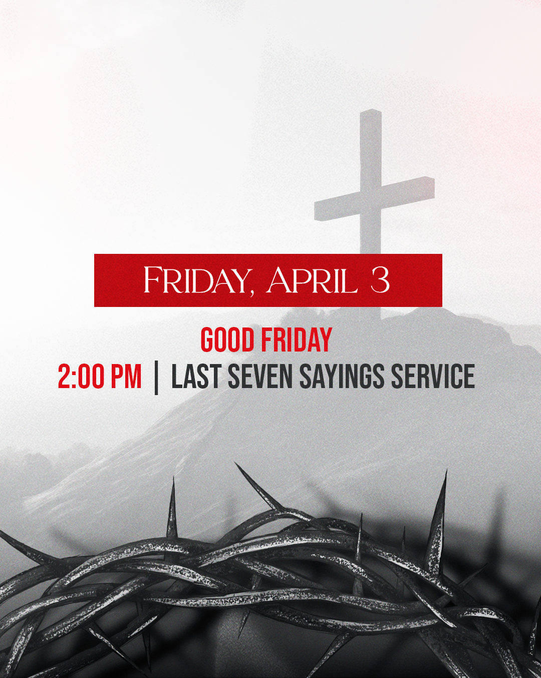 Join Revival Now Global Church on Friday, April 3 at 2:00 PM for our Good Friday Last Seven Sayings Service. This solemn and powerful service will focus on the final words spoken by Jesus while on the cross, reflecting on the depth of His sacrifice and the love He demonstrated for humanity. Through worship, scripture, and thoughtful messages, we will take time to remember the significance of Christ’s suffering and the price that was paid for our redemption. This service provides a sacred moment for reflection as we prepare our hearts for the celebration of the resurrection.